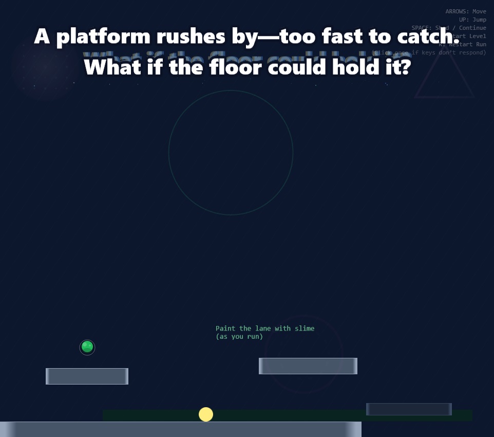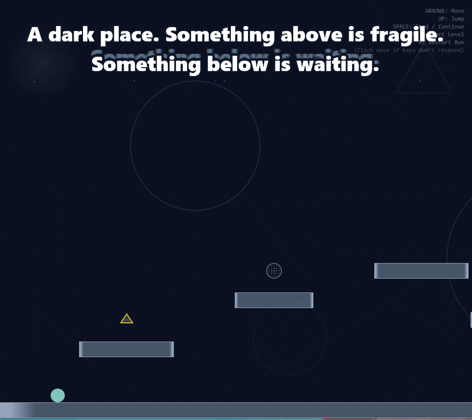 POTENTIAL is a simple browser game with platform mechanics, mostly AI-generated. Incorporating philosophical themes, the game was inspired by the 2025 short story "Undefined".